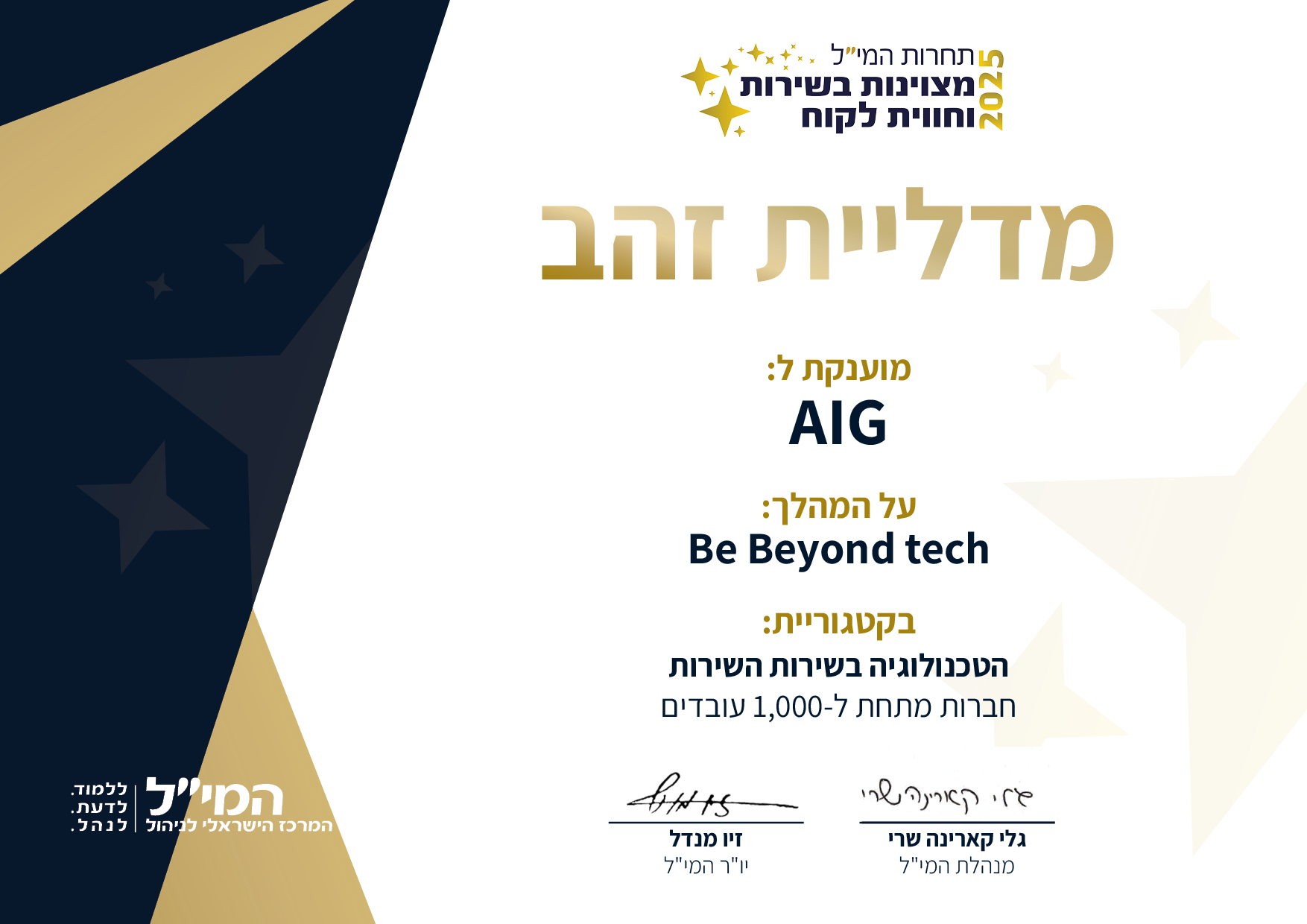 זו לא רק טכנולוגיה. זו חשיבה חדשה על שירות. AIG – תמיד איתך ברגע האמת.